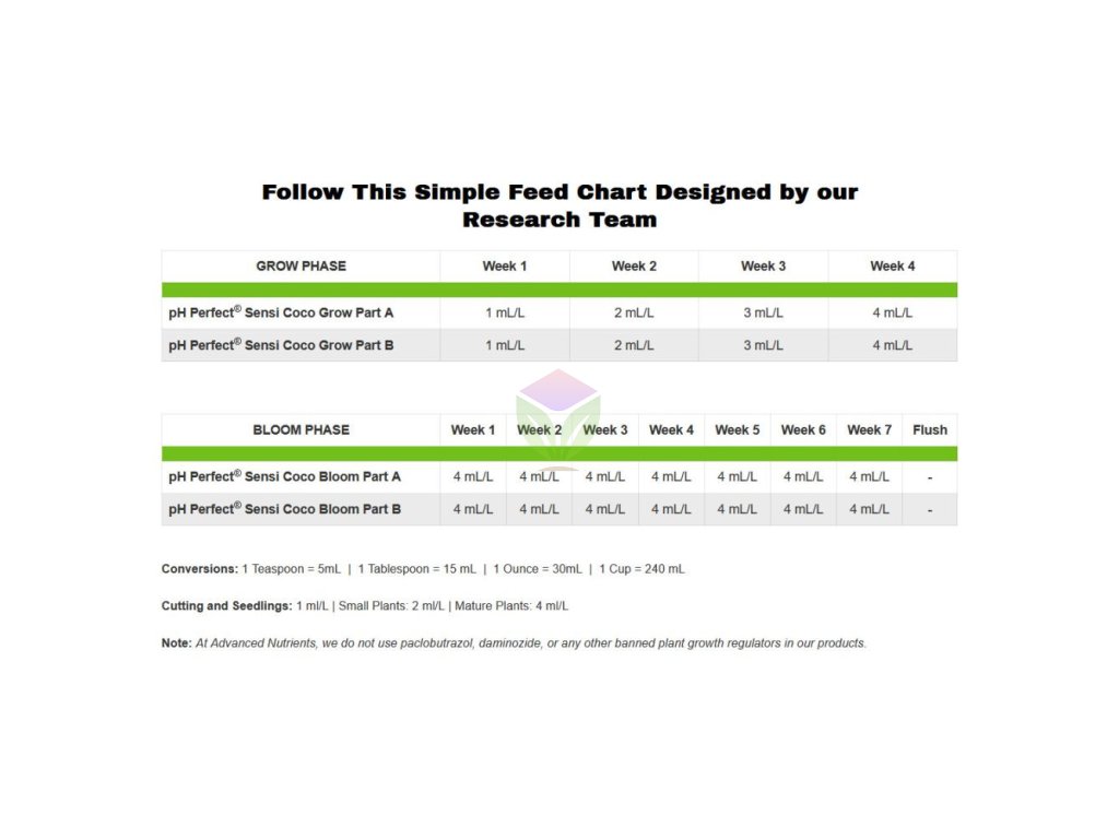 Először is, éppen elég káliumot biztosít ahhoz, hogy elkerülje ennek az elemnek a mérgező hatását, amely amúgy is olyan bőségesen megtalálható a kókuszdió szubsztrátumban. Másodszor, a magnézium és a kalcium kelátolt formáit tartalmazza, amelyek ellenállnak a kókuszdióhoz való kötődésnek, és ehelyett táplálják növényeit. Harmadszor, és ami a legfontosabb, biztosítja a kókuszdió puzzle hiányzó darabját: a vas különböző kelátolt formáit, amelyek megszüntetik a vashiányt, amely a kókuszdióban való növekedést okozhatja.