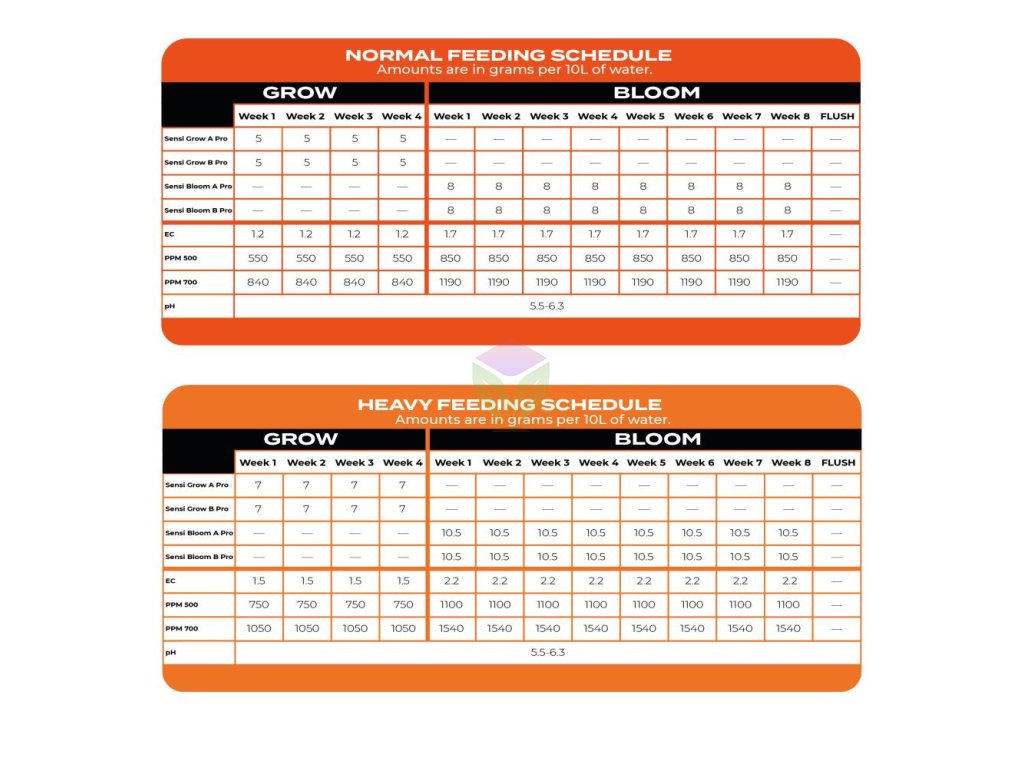 Az alaptápanyagot kifejezetten különböző hidrokultúrás táptalajokhoz és aeropónikus, csepegtető, NFT, ebb&flow vagy mélyvizes kultúrarendszerekhez tervezték. A hagyományos vízben oldódó műtrágyáktól eltérően a Sensi Professional sorozat pontos mikrotápanyag arányokat biztosít a növények fejlődésének minden egyes szakaszához. A vegetációs időszak alatt a növények több kalciumot, vasat, mangánt és bórt, és kevesebb nitrogént, káliumot, cinket és foszfort vesznek fel. A teljes termőképesség virágzási szakaszában pedig több nitrogént, káliumot és cinket (és valamivel több foszfort), és kevesebb kalciumot, vasat, mangánt és bórt vesznek fel. A savas rizoszféra számára a kelátolt vas és a karbamid három formájával a Sensi Professional folyamatosan biztosítja a növények számára a könnyen hozzáférhető tápanyagokat. Az Advanced Nutrients adagolási táblázata megtalálható a képgalériában vagy a csatolt fájlokban. A csomag 1 kg A összetevőt és 1 kg B összetevőt tartalmaz.