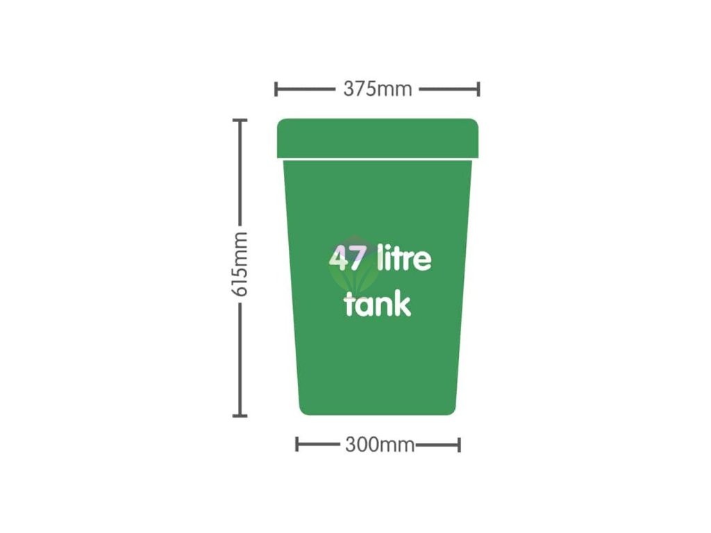 Kérjük, vegye figyelembe, hogy ez a termék tartalmaz egy előfúrt 47 literes tartályt, a tartály fedelét és egy 9mm-es Top Hat átmenetet. A 9mm-es golf szűrőt külön kell megvásárolni.