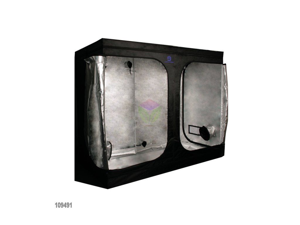 Kettős növénytermesztő sátor, a Diamond Box SL120E ugyanolyan termesztő területet kínál, 2,88 m2, mint két összekapcsolt Diamond Box 120, azonban előnye a masszív külső burkolat, ami megakadályozza a fény vagy a levegő szivárgását.