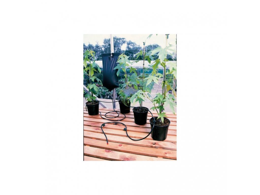 A Garland önönöntözőrendszer 10,5 literes víztartállyal, 5 méter öntözőcsővel és 6 állítható csepegtetőfejjel van felszerelve.