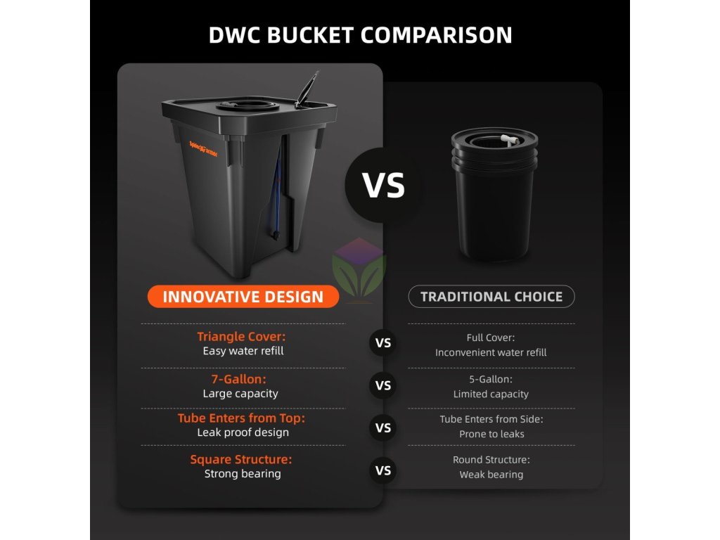Bemutatjuk a fejlett Spider Farmer DWC hydroponikus rendszert, felül csepegtető öntöző szettel. Ez a rendszer a DWC (Deep Water Culture) technológiát használja, és ideális a hatékony beltéri növénytermesztéshez. 26 literes térfogatú tartályaival bőséges helyet biztosít gazdag gyökérrendszernek és növényeid egészséges növekedésének. Ideális közepes méretű growboxokhoz, melyek alapja 100x100 cm-es.