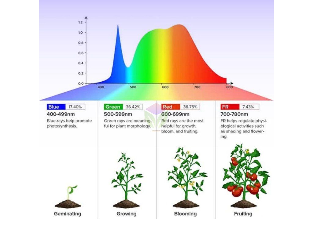 Egy nagyon hatékony LED világítás, amelyet a fényenergia maximális kihasználása és a növények növekedésének támogatása érdekében terveztek vegetációtól a virágzásig.