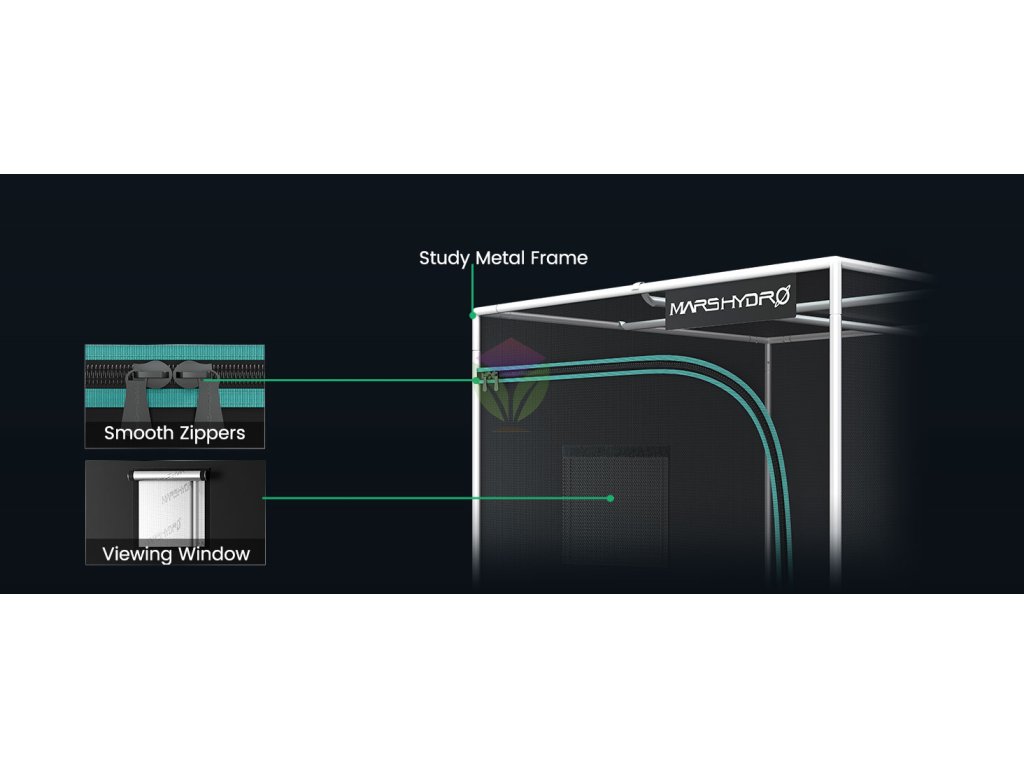 A Mars Hydro növénytermesztő sátrak tartósak, hordozhatóak és reflexiós anyaggal rendelkeznek a fény maximális kihasználása érdekében. Optimális hőmérséklet-, fény- és páratartalom-ellenőrzést tesznek lehetővé az egészséges növekedéshez. - Szellőztető Rendszer