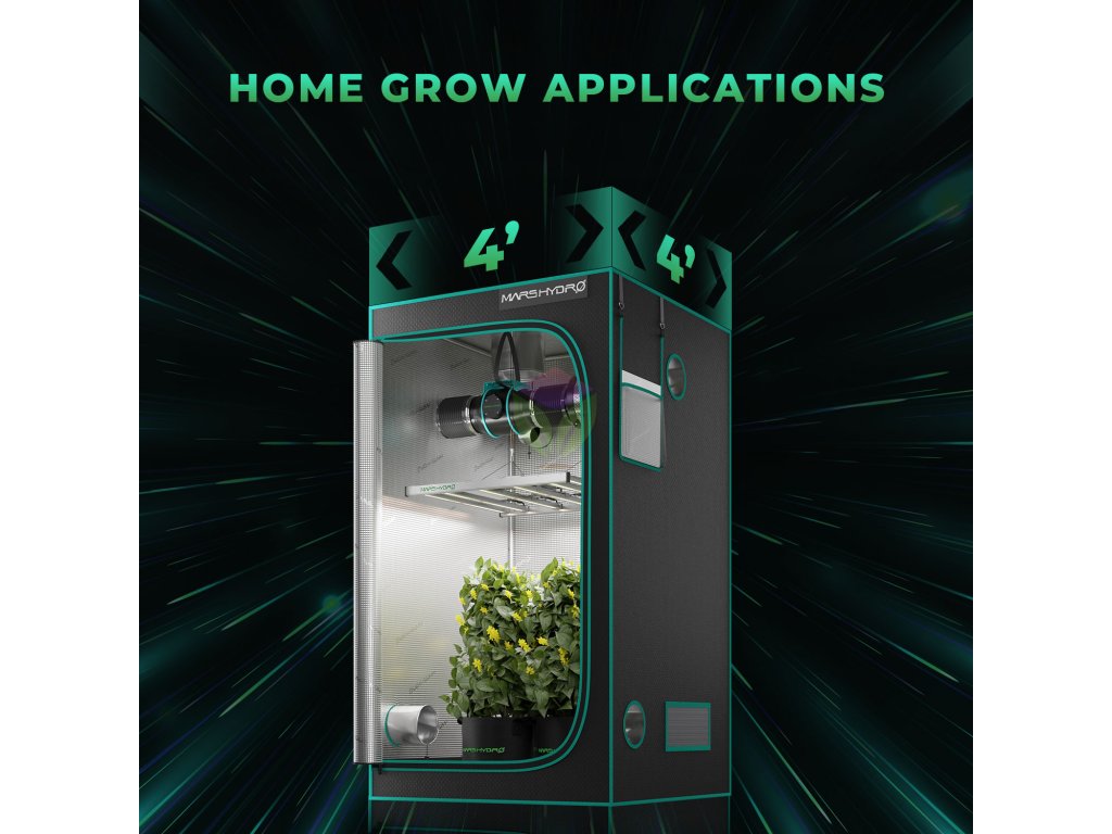 Az általunk kínált Mars Hydro SET 480W FC E4800 mérete 120x120x200 cm ideális megoldást kínál kezdő termesztőknek vagy azoknak, akiknek limitált helyük van beltéri termesztéshez. A teljes készlet ideális 4-6 közepes méretű növény teljes életciklusának növesztésére, nagy hozamszerzés céllal.