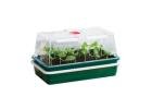 Kemény műanyagból készült, szellőztetett, fűtött üvegház termosztáttal. Alsó része zöld. Az üvegház méretei: 59x41x26,5 cm.
