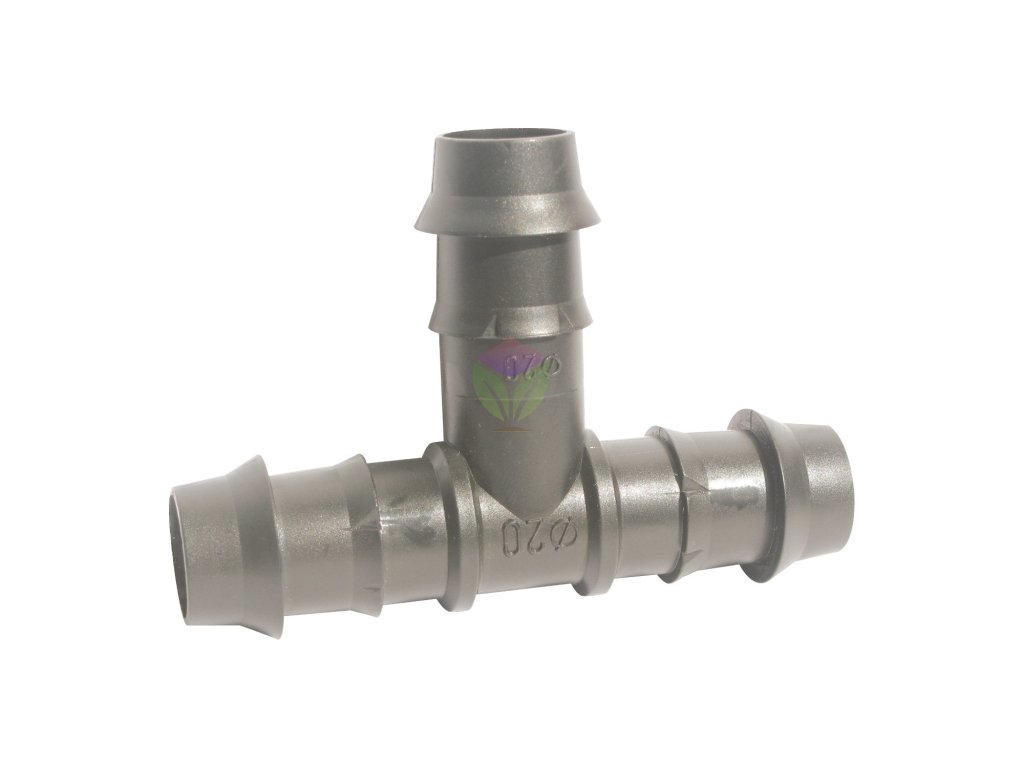 Műanyag tasak, T alakú csatlakozó öntözőrendszerekhez. Átmérője 20 mm.