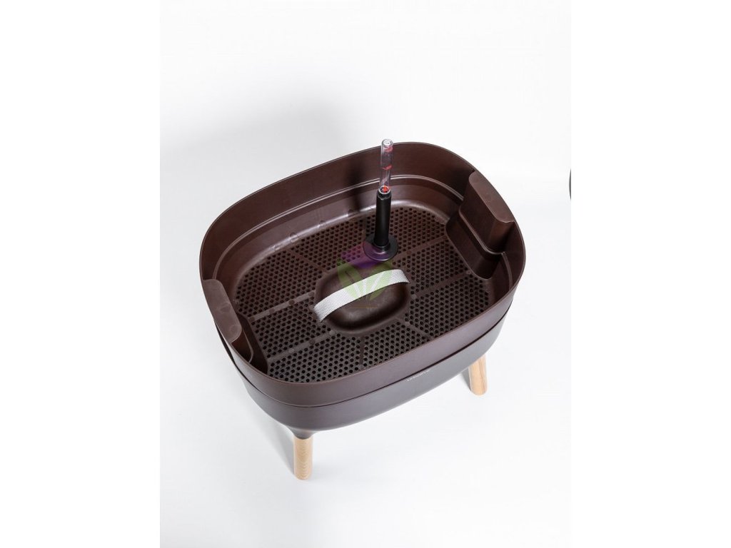 Ebben a virágágyásban nagyszerűen fognak érezni magukat a szobanövények, virágok, fűszernövények vagy a kevésbé igényes zöldségek. Az eredeti design, ami a fát és a műanyagot ötvözi, a neves cseh tervező, Jiří Pelcl munkája. A fa lábak könnyű hozzáférést biztosítanak a növényekhez és kellemes látványt nyújtanak.