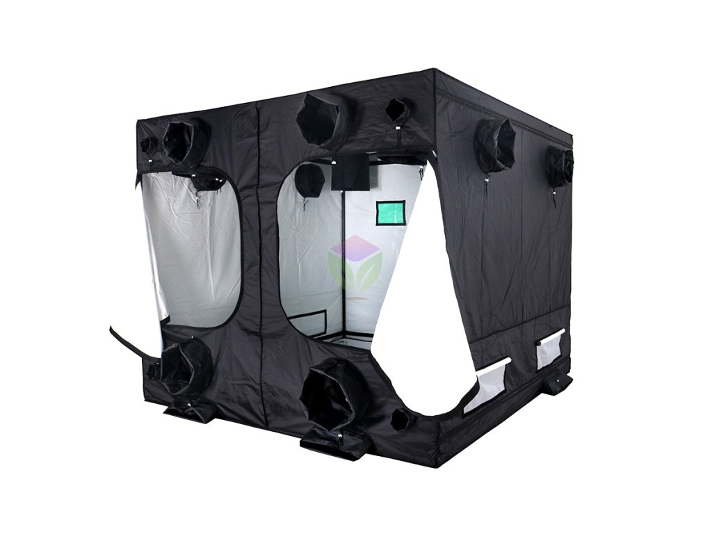 BudBox PRO Titan III este un cort de cultivare care nu te va dezamăgi, indiferent dacă ești un entuziast al cultivării acasă sau un biolog profesionist care știe ce face. Acest cort de cultivare îți oferă o suprafață totală de 240 x 240 cm și o înălțime de 200 cm. Se poate lăuda cu un material opac în patru straturi, inclusiv cu fermoare opace recent brevetate.