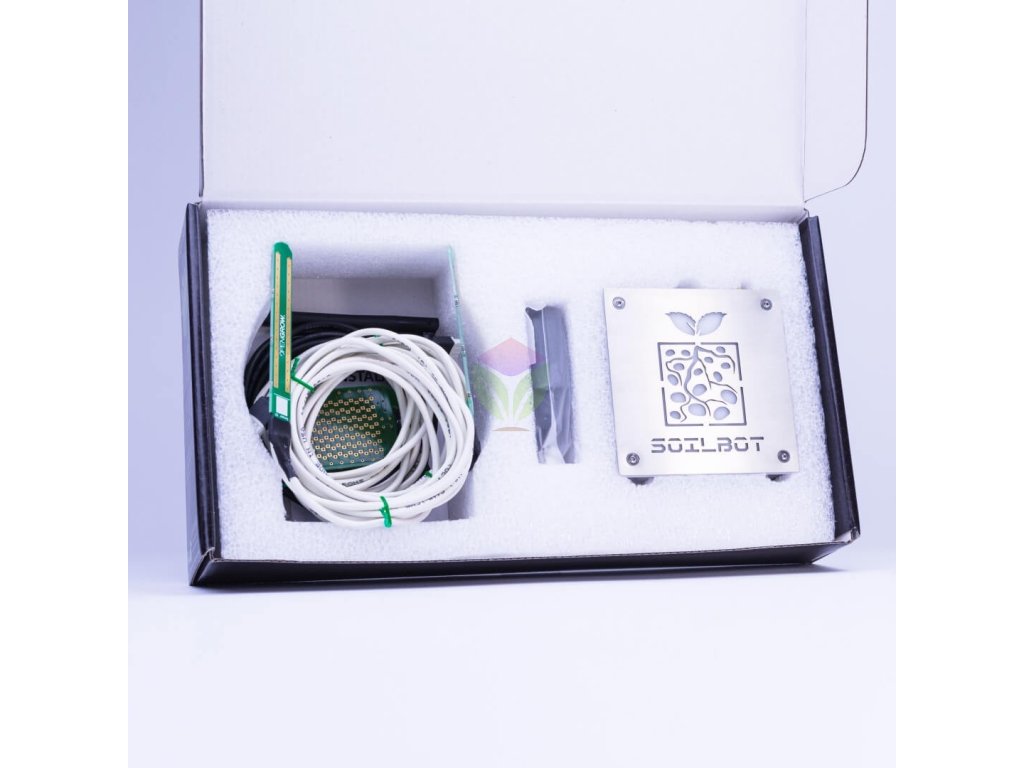 GroLab SoilBot vine standard cu un senzor de temperatură, doi senzori de umiditate și un senzor de inundație. Senzorii suplimentari trebuie să fie achiziționați.