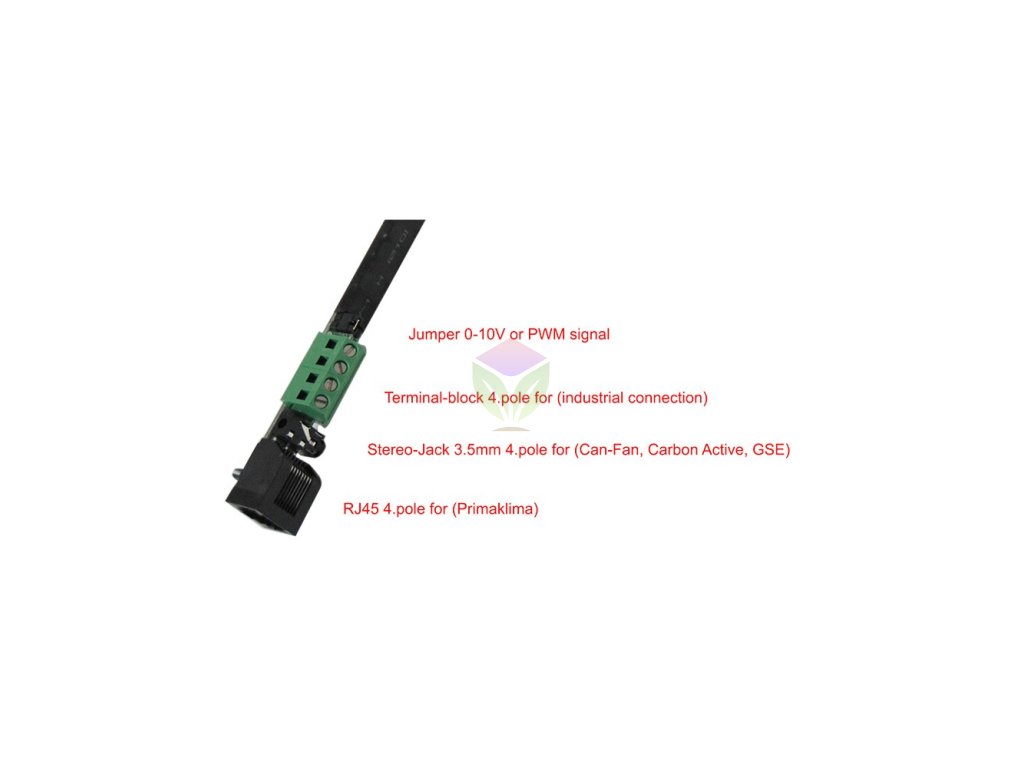 Ieșirea semnalului furnizează un semnal de 0-10 V sau PWM (modulație a lățimii impulsurilor). Pentru controlul ventilatoarelor EC sau al balastului digital cu variație de intensitate. Pentru GSE SGC Smart Grow Controller.