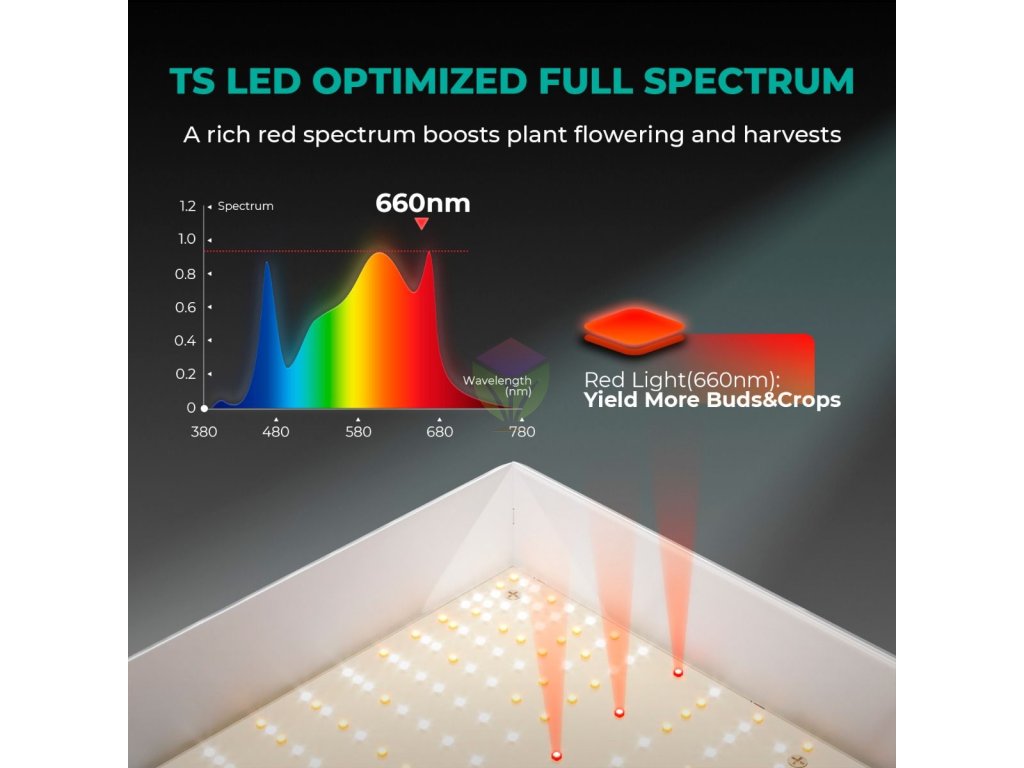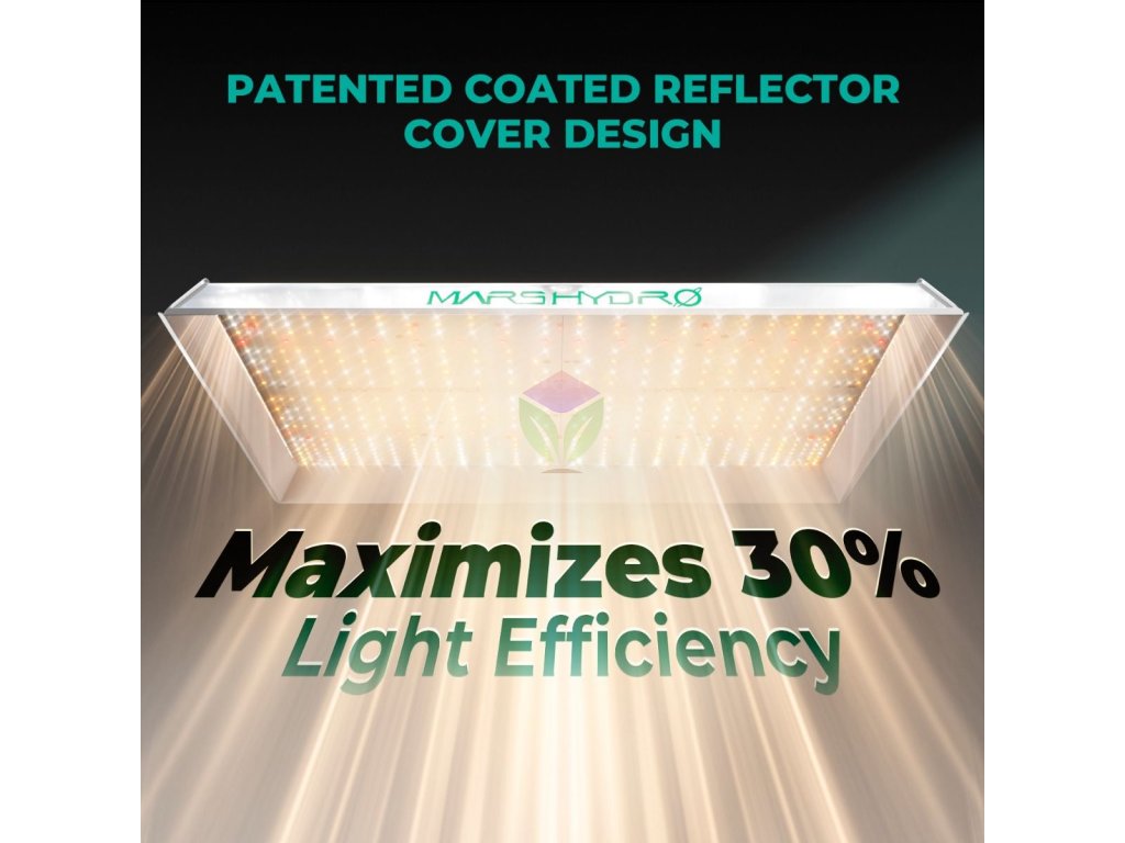 MARS HYDRO TSW2000 este echipat cu 624 de cipuri LED EPISTAR, generând o putere totală de 300 W . Acest accesoriu GROW utilizează LED-uri albe (mix 3200 - 6800 K) care simulează perfect lumina naturală a soarelui și furnizează nutrienții necesari plantelor. În același timp, aceste LED-uri SMD consumă mai puțină energie pentru aceeași luminozitate, astfel încât lumina de creștere nu trebuie să fie echipată cu un ventilator zgomotos pentru a răci temperaturile ridicate. Designul reflectorizant al lămpii se potrivește perfect în orice grow box și favorizează reflectarea luminii.