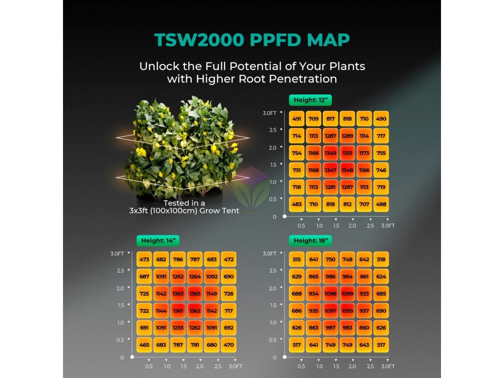 Specificații lumină de creștere MARS HYDRO TSW2000