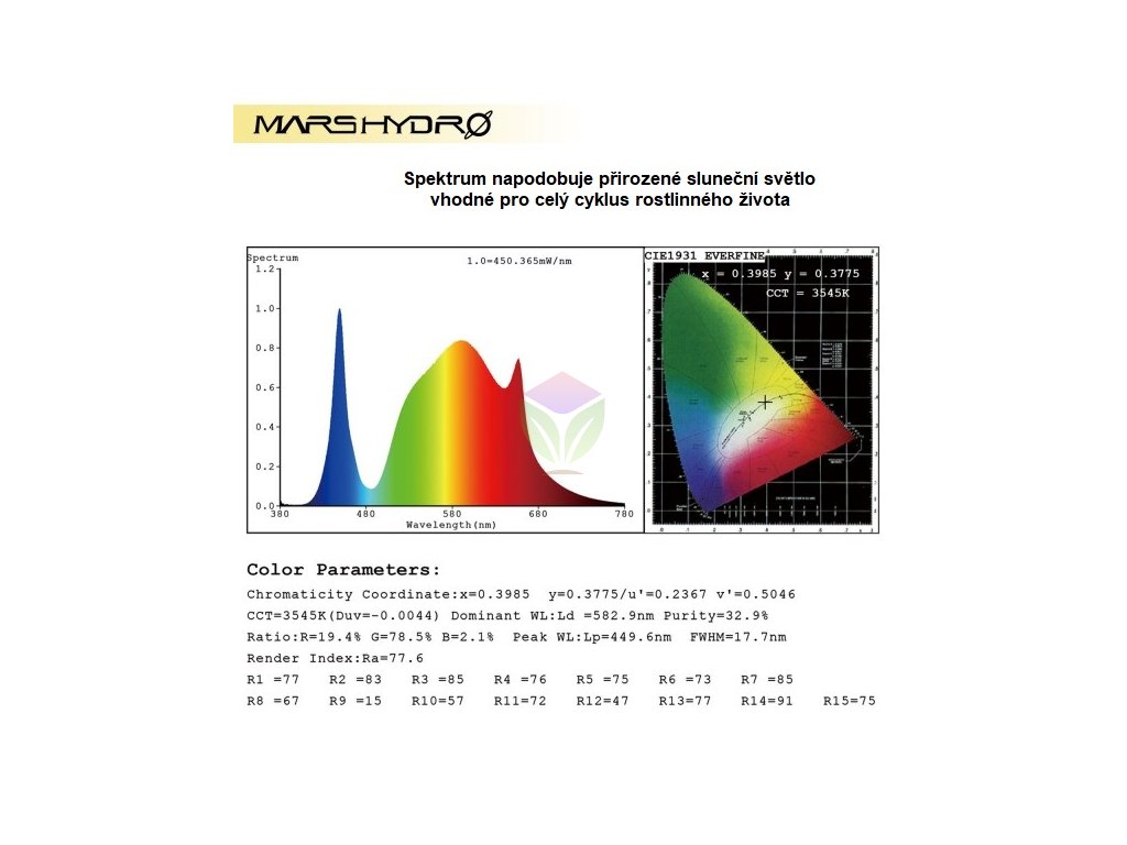 - Spectrul de lumină: 660-665nm, 3200-4200K, 5200-6800K
