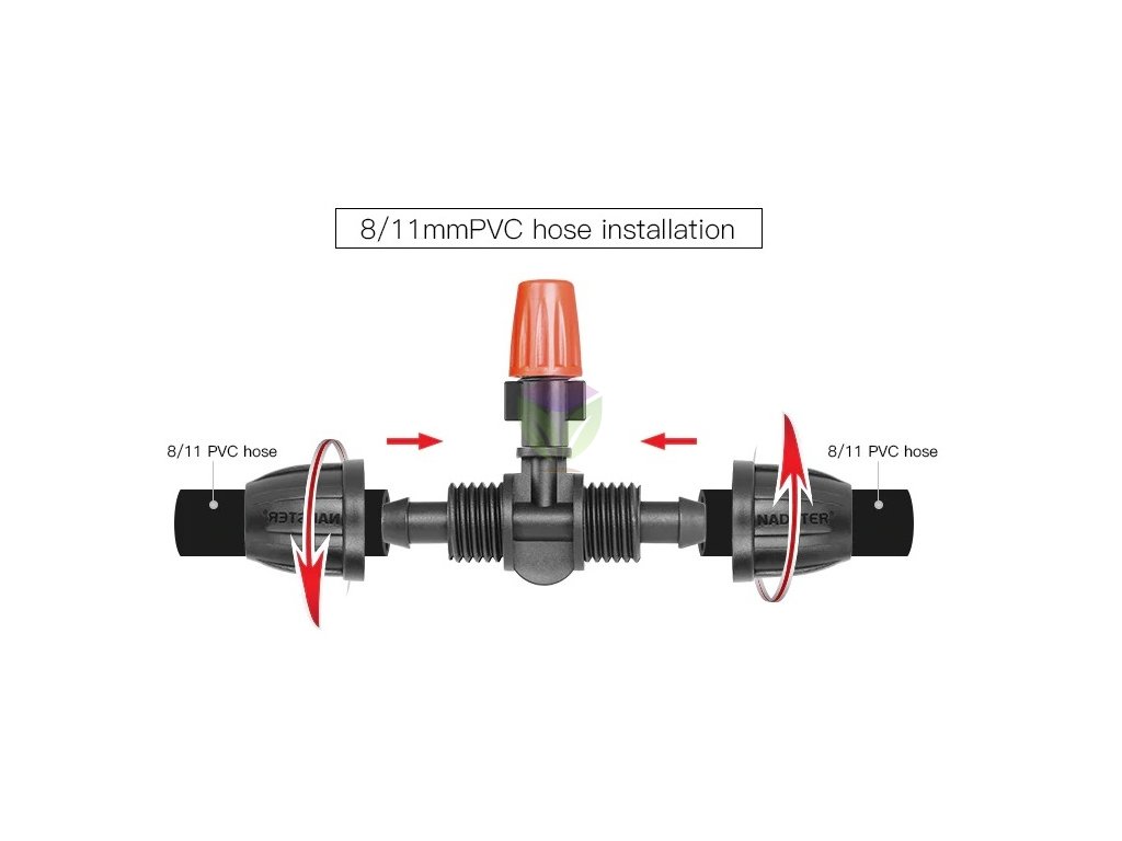Fixarea duzelor este o sarcină foarte simplă. Trebuie doar să tai/tăiați furtunul în punctul în care doriți să plasați duza. Introduci duza între cele două capete noi . Setați direcția în care duza va pulveriza și strângeți filetul de plastic pentru a asigura o bună etanșare. Continuați acest lucru pe întreaga lungime a furtunului. Nu sunt necesare alte unelte. |
