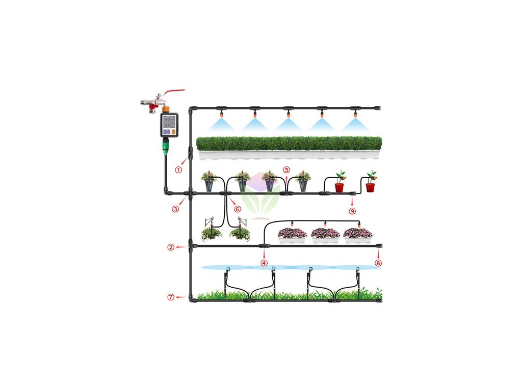 E timpul să udați straturile de flori? Turnați-vă o ceașcă de cafea, deschideți încet robinetul, așezați-vă în fotoliul confortabil și bucurați-vă de picăturile microscopice care cad pe frunze timp de 20 de minute. Ușurința udării în sere și a frunzelor nu a fost niciodată atât de accesibilă. Acest sistem de irigare este conceput pentru serele mai mici (până la 6 metri lungime).