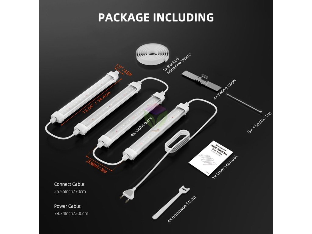 Iluminare suplimentară Patru benzi LED cu o lungime de aprox. 33 cm iluminează eficient părțile inferioare sau laterale ale plantelor și extind acoperirea luminoasă acolo unde lumina principală de creștere nu ajunge. Optimizați configurația de creștere și creșteți randamentul plantelor existente. -