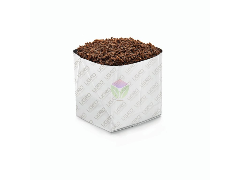 Cărămizi de nucă de cocos uscate și presate PLAGRON Cocos Brix. Se toarnă aproximativ 6 litri de apă pentru a obține aproximativ 9 litri de substrat.