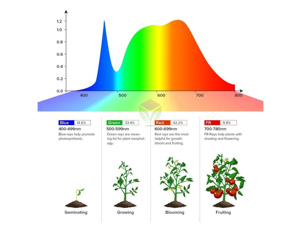 Nagy hatékonyság & energiamegtakarításA fényerő akár 4000 lumen eléri a PPF 57 umol/s és PPFD 345 umol/s/m^2 értékeket 30 cm távolságban, amely elősegíti a növények gyorsabb és erősebb növekedését. Eközben mindössze 40 W-ot fogyaszt, ami egy hagyományos 600W izzó teljesítményével egyezik meg - ezzel akár 93 % energiát takaríthat meg. |