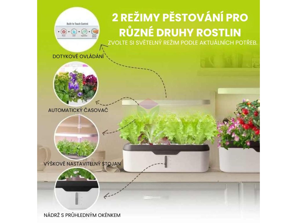 GLPN GL01 okos hidroponikus virágcserép a modern megoldás otthoni fűszernövények, zöldségek és virágok termesztésére talaj nélkül. Több növénytermesztési üzemmódot kínál a növényfajtáknek megfelelően, érintőképernyős vezérlést és automatikus időzítőt a kényelmes működés érdekében. A beépített LED világítás és a víztartály miatt ideális belső terekbe, ahol egész évben optimális körülményeket biztosít a növények egészséges növekedéséhez. Az elegáns design minden modern térbe beilleszkedik.