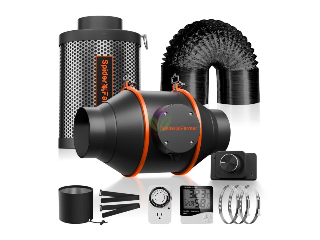 Spider Farmer 102 mm Inline ventilátor 348 m?/h, fordulatszám-szabályzó