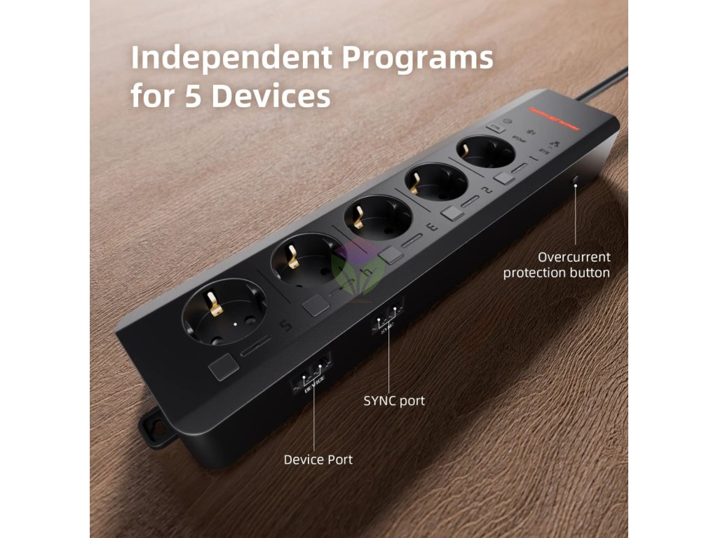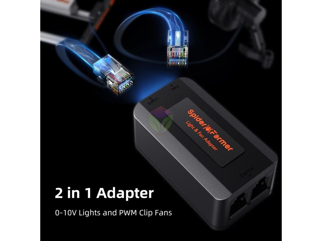 GGS AC5 egy 5 dugaszos elosztó, ami akár 5 különböző eszköz irányítását teszi lehetővé. A Spider Farmer alkalmazással távolról irányíthatóak az SF (kivéve SF1000D, SF300, SF600), G és SE sorozatú LED lámpák. Az RJ12 ventilátorok időzítési, sebességi és oszcilláló funkciókat kínálnak, míg az RJ12 port nélküli ventilátorok időzítővel vezérelhetőek.