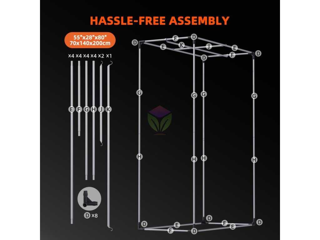 A Spider Farmer 140×70×200 cm-es növénytermesztő sátor tökéletes választás az otthoni kertészek számára, akik kompakt megoldást keresnek anélkül, hogy különleges helyiséget kellene létrehozniuk. Méreteinek köszönhetően beleillik a legtöbb standard szekrénybe, így lehetővé teszi a diszkrét növénytermesztést. Kényelmesen elfér benne 2–4 növény teljes ciklusban vagy 6–8 kisebb növény vegetatív fázisban.