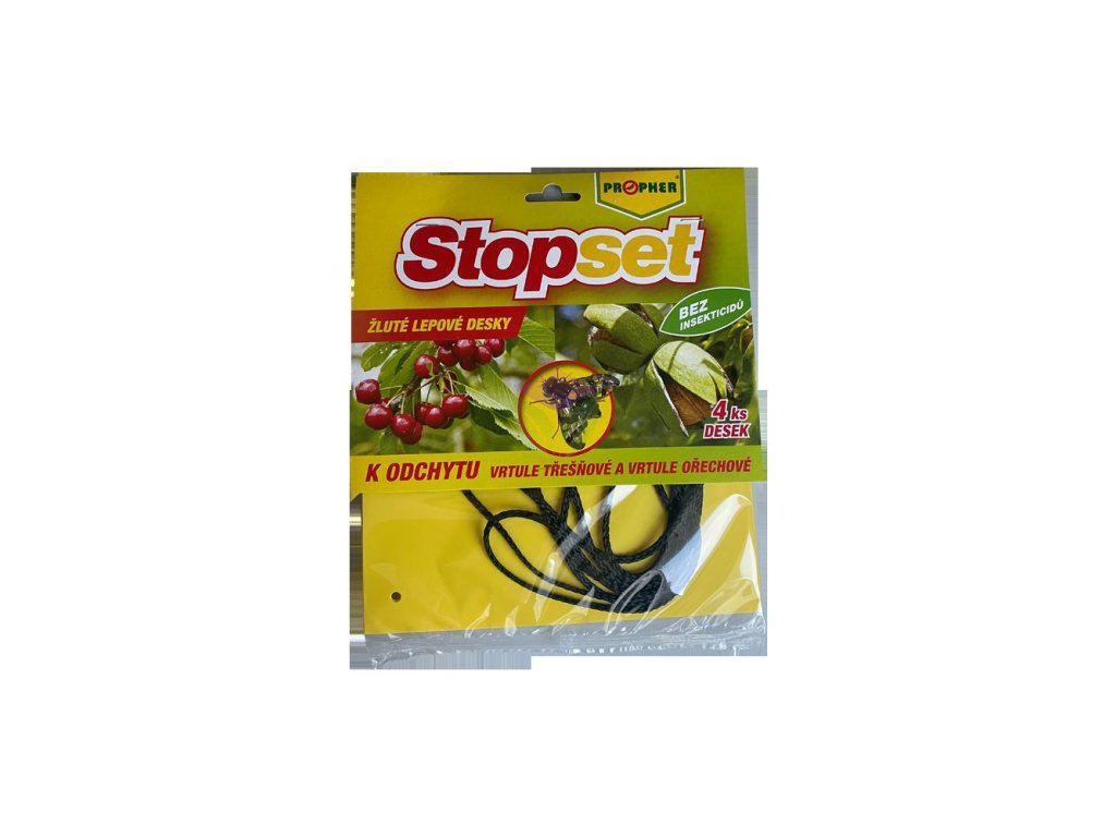 A Stopset ragasztós sárga lapokat 20x20 cm méretben használják a cseresznye- vagy dióvrtule kártevők megfigyelésére és elkapására. A csomag 5 darabot tartalmaz (3 db kétoldalas ragasztós, és 2 db egyoldalas).
