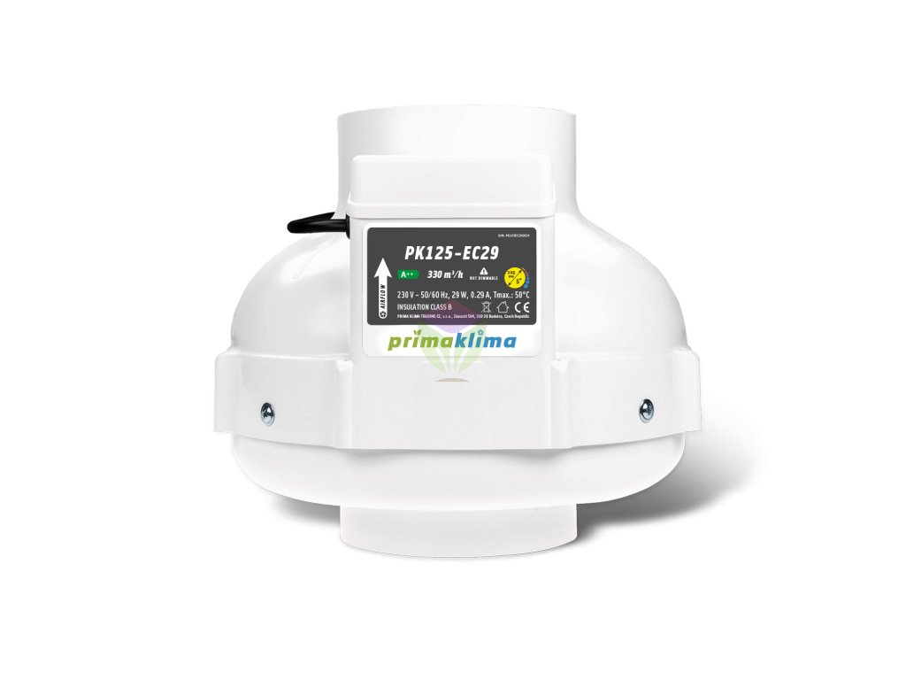 A Prima Klima PK125-EC29 egy magas hatékonyságú ventilátor 125 mm-es csatlakozással és akár 330 m3/h-as áramlással. Előnye a prémium EC motor ebm-papst-től, mely alacsony energiafogyasztású. A teljes szerkezet ütésálló és hőálló poliamidból (nylonból) készült. A ventilátor egyszerű kezelhetőségére tervezték, köszönhetően az integrált vezérlőrendszernek.